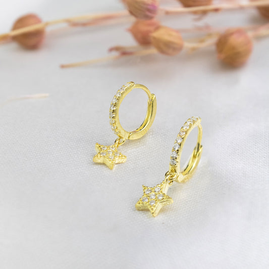 Arete Star Pendiente Estrella Plata Baño De Oro