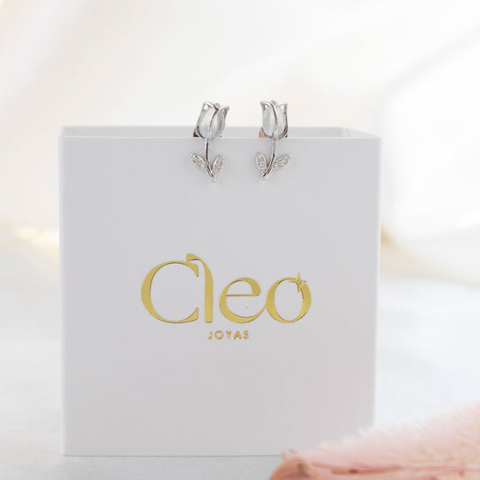AHORRAS S/. 15Arete Tulipan Piedra Blanca Plateado Plata