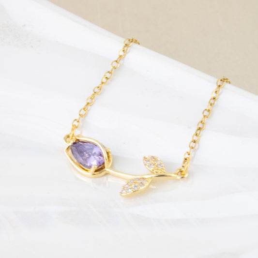 AHORRAS S/. 23Collar Tulipán Cristal Morado Dorado Acero