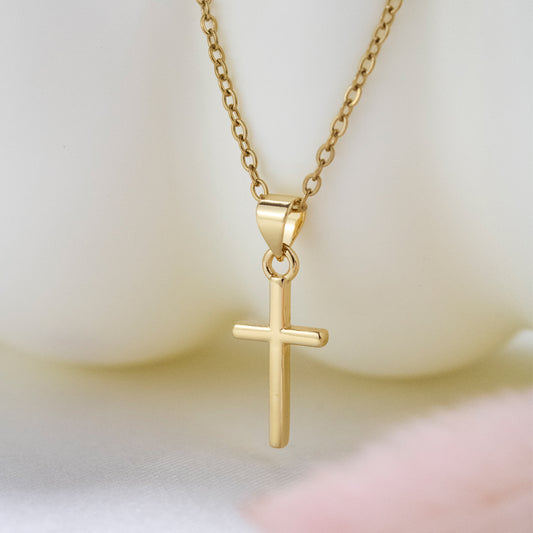 AHORRAS S/. 54.10Collar Cruz Lisa Dorado Acero