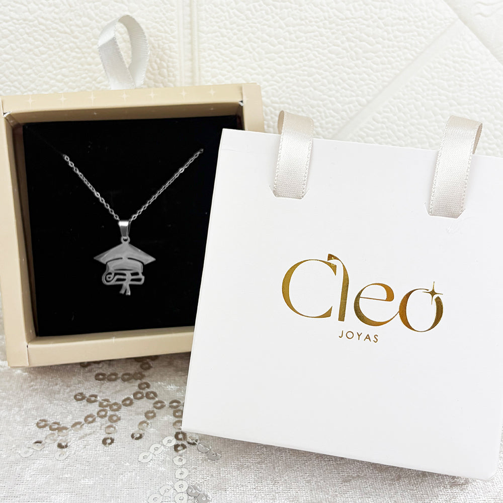 Elegante y simbólico, este collar presenta un colgante en forma de birrete plateado con diploma, perfecto para celebrar graduaciones o logros académicos. Ideal como regalo conmemorativo o para recordar un momento especial. Medida de collar: 45 cm regulable Viene en un lindo empaque de regalo, con tarjeta para dedicatoria y tips de cuidado para que pueda conservar su accesorio.