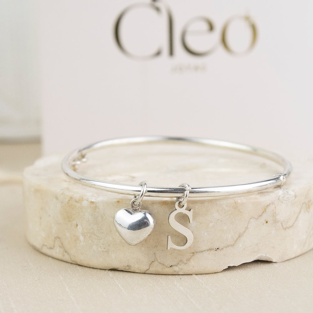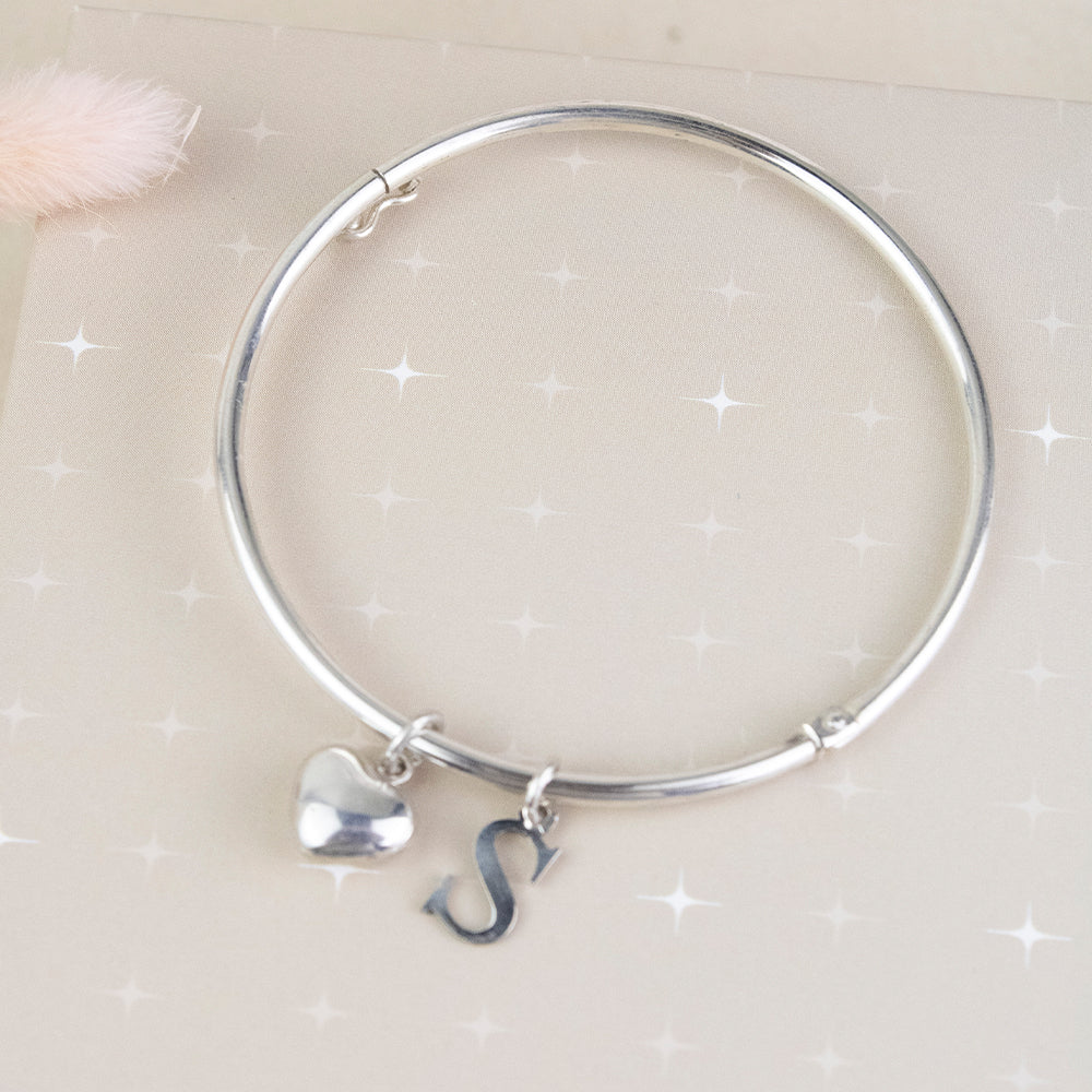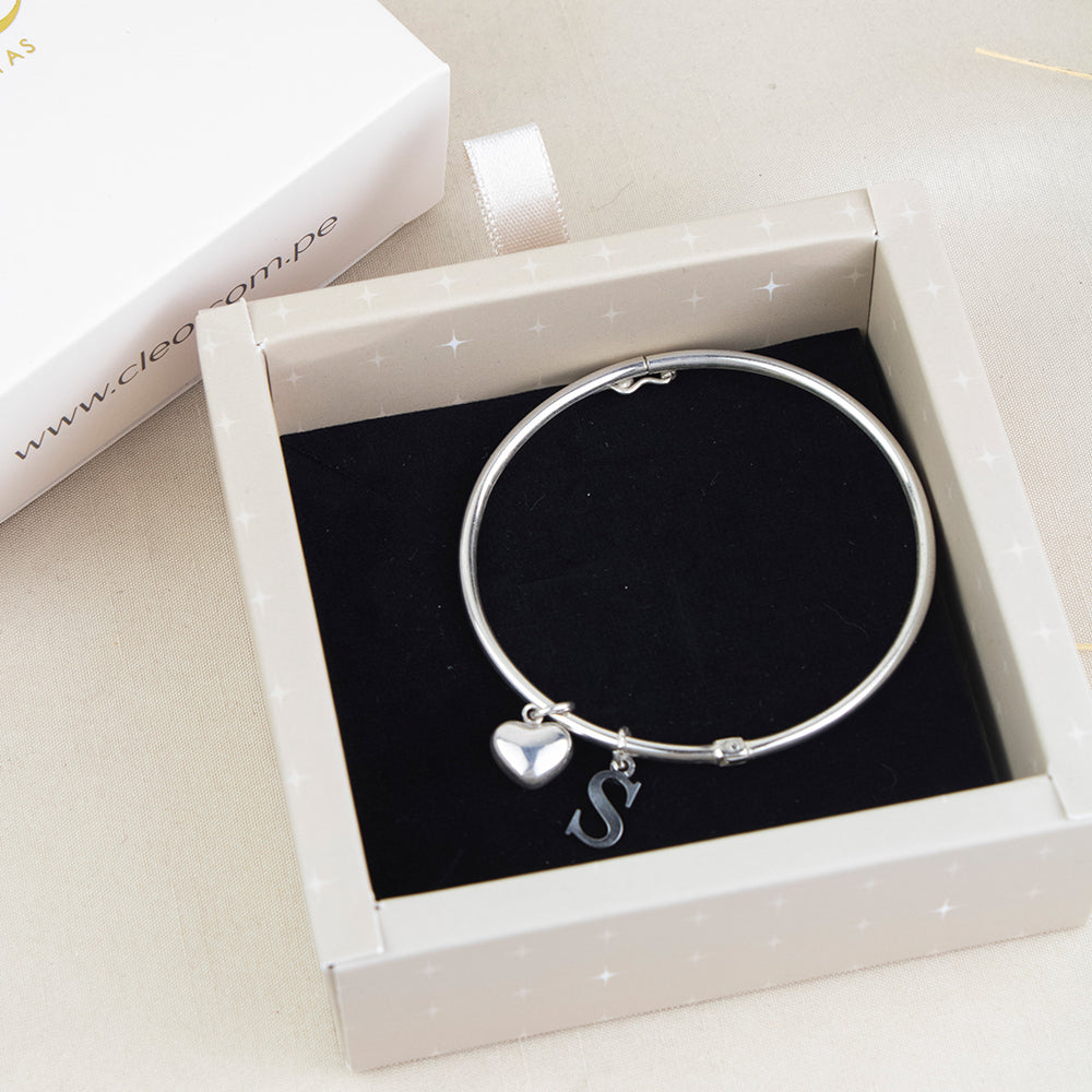 Elegante pulsera con inicial de tu nombre o de otra persona, el dije de la inicial viene con un pequeño dije de corazón bombeado haciéndolo mas elegante. Contamos con todas las letras.